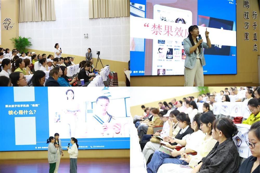 为帮助家长科学引导孩子合理使用手机,促进亲子关系和谐发展,10月14日下午,我校特邀拥有21年教研经验,拥有美国GTI国际认证的青少年教育专家讲师韩洋老师,为五六年级家长带来《预防手机沉迷 点亮孩子内在潜能》专题讲座。这场充满互动性的教育盛宴,吸引了200余位家长到场参与。