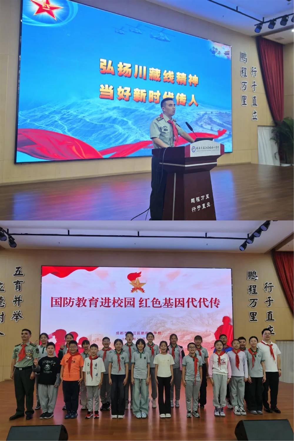 10月13日,鹏程小学在举行第76个“中国少年先锋队建队日”主题队日活动时,特别聘任了退役军人何雄担任校外辅导员,并开展了一场“国防教育进校园 红色基因共传承”主题宣讲活动。何雄以军人的赤诚与担当,为队员们带来了一堂浸润心灵的红色思政课,让爱国的种子在孩子们心中生根发芽。课堂上,他以“弘扬川藏线精神,当好新时代传人”为题,用亲切的笑容和军人特有的铿锵语调,迅速拉近了与孩子们的距离。