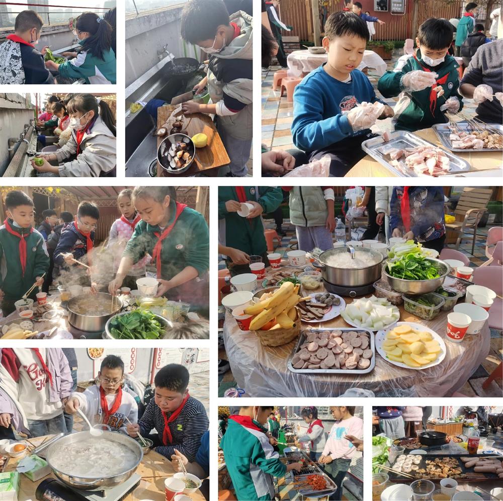 野炊现场暖意融融,烟火气十足。孩子们围在烧烤炉旁,看着食材在烤盘上滋滋冒油,香气扑鼻而来;火锅锅里汤汁翻滚,各类食材在锅中咕嘟作响,香气四溢。大家分工协作,有的负责倒果汁,有的负责摆盘分餐,在忙碌中感受合作的快乐,在等待中期待美食的滋味。当亲手制作的烧烤、水饺、火锅端上桌,孩子们迫不及待地品尝着自己的劳动成果,鲜嫩的口感、鲜香的味道让大家赞不绝口,一张张笑脸在烟火气中格外灿烂。