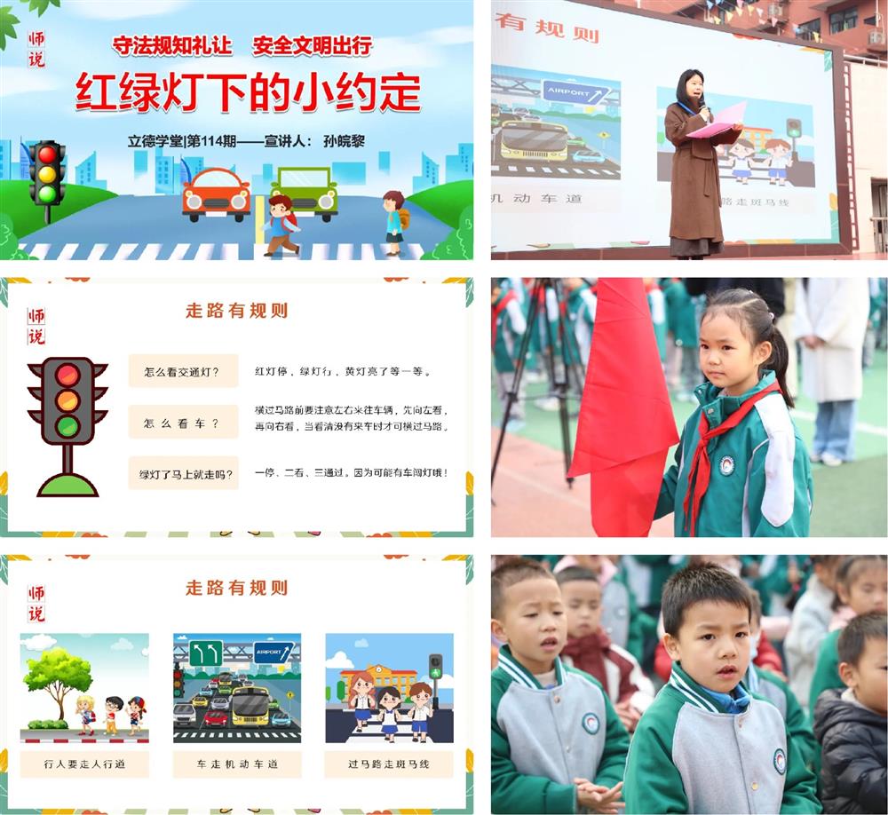 同学们,互助让我们的校园充满爱,规则让我们的生活更有序。就像红绿灯一样,只有红灯停、绿灯行,交通才能顺畅;只有互相帮助、遵守规则,我们的校园才能成为安全又温暖的家。让我们从今天开始,遵守“红绿灯下的小约定”,做互助友爱的好孩子,做遵守规则的小公民!